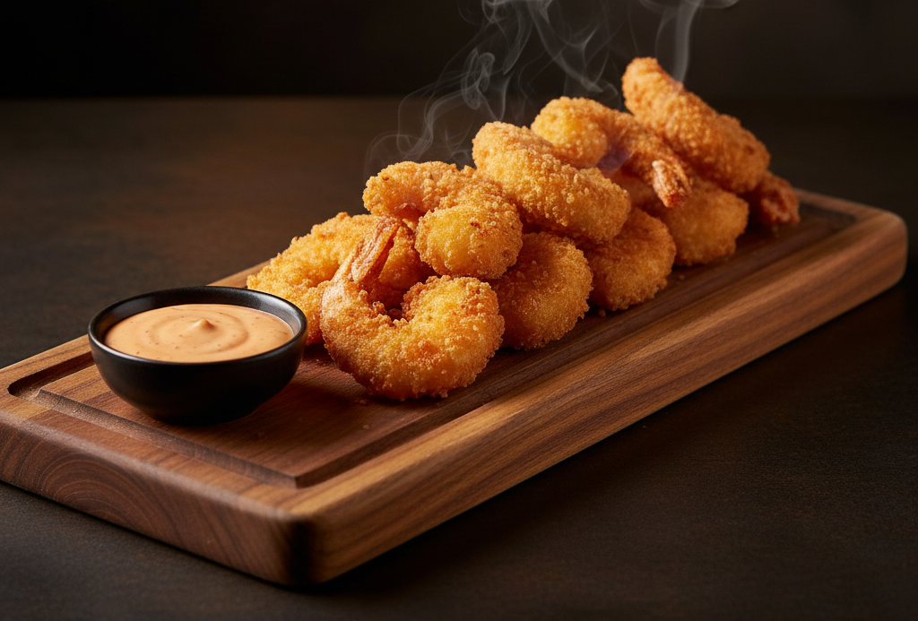 Нежные креветки, обжаренные до золотистой корочки в легкой хрустящей панировке. Это блюдо сочетает в себе идеальную текстуру и вкус, идеально подходит как закуска или основное блюдо. Хрустящая панировка гармонично сочетается с сочными креветками, создавая незабываемое гастрономическое впечатление. Попробуйте и насладитесь уникальным сочетанием!