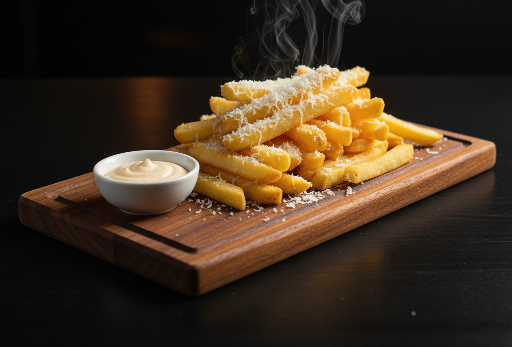 Откройте для себя новый уровень вкуса с нашими картофельными фри, покрытыми тертым пармезаном и трюфельным маслом. Каждый кусочек — это хрустящая радость с богатым ароматом, который приятно удивит ваши вкусовые рецепторы. Идеальное дополнение к вашему заказу!