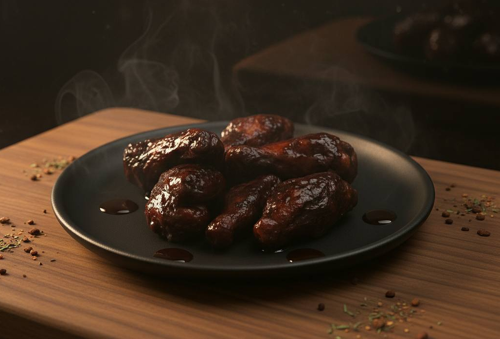 Сочные куриные крылья в фирменном соусе BBQ, приготовленные до идеальной золотистой корочки. Украшены свежим зеленым луком для аппетитного акцента. Идеальный выбор для вкусного перекуса или дополнения к вашему вечеру!